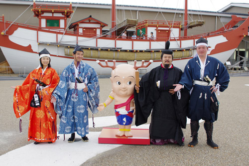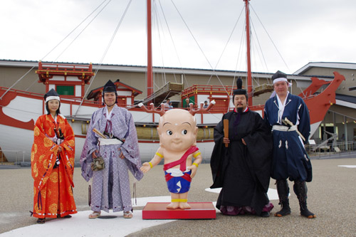 本来ならば束帯で参りたい所ですが、持っていませんのでやむなく衣冠で参内することにしました^^ ですが衣冠のままシートベルトすることは中々大変です^^; 平城京に着くと予想通り警備員の方や観光客の方が驚いておられました^^ しかし昨年の1300年祭の時とは比べ物にならないほど人が少なく、オフ会にはもってこいの状態でした。また気候も過ごしやすく、ありがたかったです。 まず向かったのは平城京シアターと遣唐使船がある歴史館です。 この歴史館に入るのは二度目で、1300年祭の時に「ずっと残しておいてほしい」と思っていましたので、とても嬉しかったです。 駐車場のすぐ近くですので、まずこの歴史館に寄られることをお勧めいたします。 その歴史館に近付くと、関東にいるはずのさる御仁が…^^ 誰も遷都くんなんて呼ばず「和尚、元気??」と声をかけておりました。 和尚と再会の後は歴史館へ入場です。 中は1300年祭と同様で、シアターは何度観ても最高です。 そして遣唐使船でのんびりと遊びました。 |