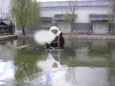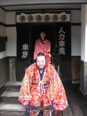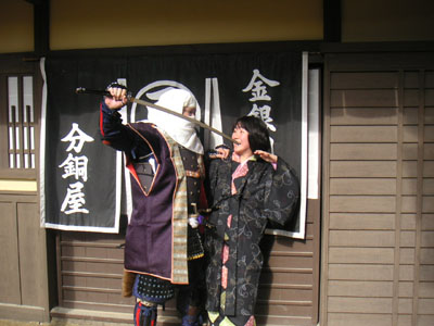 | さて映画村でのお約束はネタ写真。 うーん、いつもながら横内殿はネタにするには最高の人材です^^次々と思い浮かんでしまいます。 |