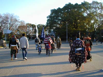 ![]() 法螺貝を鳴らし、旗を先頭に帰陣を・・・ |