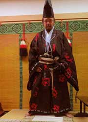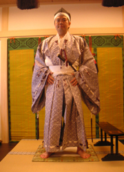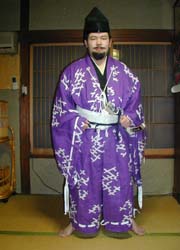 | 直垂とは? | 日本古来の装束は数多ありますが、そのほとんどは外来文化(中国・韓国や欧米など)に起源を発しています。それに比べ、直垂は庶民服から発展したもので、そういった意味では純粋な民族衣装と呼べると思います。 最初は庶民の平服でしたが、鎌倉時代に入りますと幕府などへ出仕する際の公式衣装となりました。また戦争時には鎧直垂と呼ばれる直垂を着用し、多くの日本人に愛用されました。その後は公家も用いるようになり、種類も素襖や大紋など多種多彩になりました。 |
