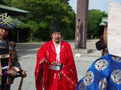 | 5月17日の大坂の陣合戦祭では多忙過ぎて御座船に乗船が出来ませんでした。 FBにおいて「御座船オフ会やりたいなぁ」とコメントしたところ、あれよあれよという間に開催することが決まってしまいました^^ そこで秀頼公の直垂をお借りして参加することになりました。 |