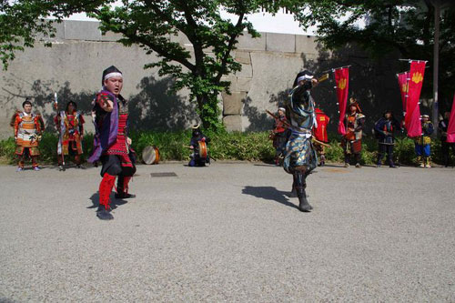 | 大阪城・豊国神社 豊国踊り援軍 ![]() ![]() 2016年5月4日 【画像提供】楠木正勝殿/大坂陣参加者の皆様 |