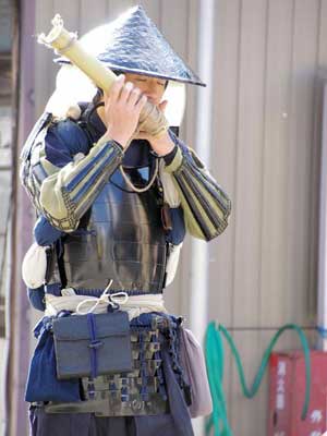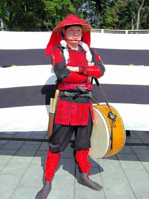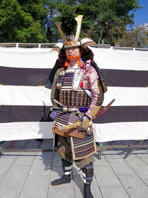 | 行列終了後は新作の鎖帷子に着替えます。 犬山城天守閣が工事中なのはちょっと残念ではありましたが…^^; |