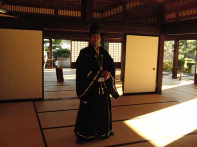 | 掛川城のスタッフさんの依頼で縁側にての撮影もいたしました。 まったりとしていますと、正勝さん登場です。 正勝さん「待ちに待ってた出番が来たぜ!逆転マサカツマン」 さて。今回鎧直垂を着用していたのには大きな理由が…! また鎧屋さんにお願いをしまして大黒頭巾を着用させていただくためなのです! 三年前は喉輪が入らなかったのですが…今回は無事入りました!! いや、もうやっぱり大黒頭巾は最高です! さすがは松平忠明さんのお爺様だけはある!(←もう基準が変になっている) と、こんな調子で終始鎧屋さんのお世話になりっぱなしの一日でした。 鎧屋さん特製の大鎧兜もかぶせていただきましたし、色々とグッズも拝見させていただきましたし^^ オフ会終了後は宿泊地である川崎へ移動するのでした。 今回もお世話いただきました鎧屋さんには篤く御礼申し上げますm_m |