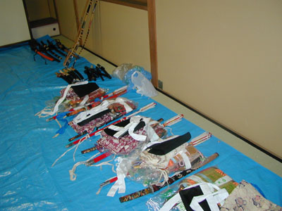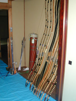 ![]() ![]() (左)参加者の方々に用意された甲冑群。皆さん、歓喜の声を挙げていました。 (右)子供用の装束。小さくてかわいいです。 ![]() そして弓矢。ああ、一海も欲しい〜!! |