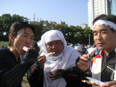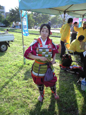 | イベントは二回だけの催しでしたが、予想以上に暑く、結構やばかったです^^;;うーん、冷えビタ用意しておけばよかった^^ 本ブースは早々と終了してしまったために、脱いだ甲冑を飾り、何のブースかわかんなくなってしまいました^^;; 最後は甲冑に興味を持たれた方とお話をし、のどかな一日を過ごすことが出来ました。 今回無事PRが出来ましたのは東・南署の皆様、防犯協会の皆様、そして熱演していただきました隊士の皆さんのお陰です^^また来年も機会がありましたらよろしくお願いいたしますm_m |