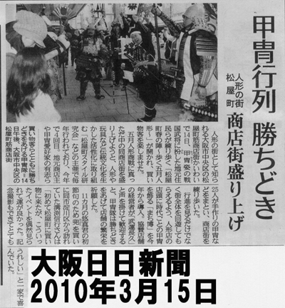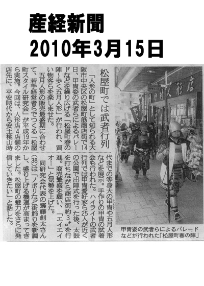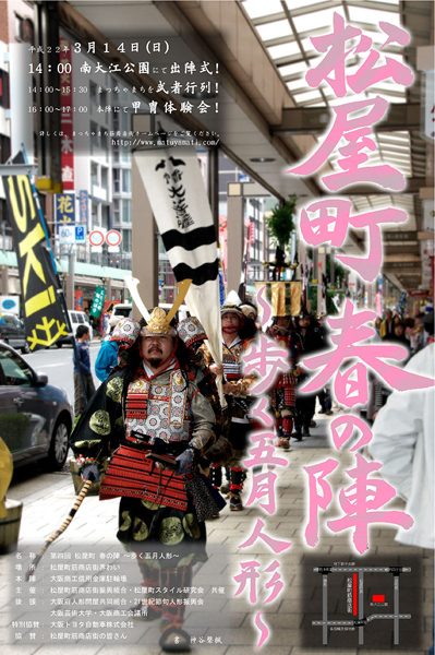 松屋町春の陣〜歩く五月人形〜2010![]() 2010年3月14日 3/13 甲冑軍議:詳細はこちら まち博の詳細はこちら ![]() ![]() ポスター・記事をクリックしますと拡大します。 【画像提供】楠木正勝殿/水守富楠殿/幽霊雑兵様 |