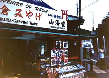 ![]() 一見ごく普通のおみやげ屋さんに見えるのだが・・・? さて鎌倉へ行けばいの1番で向かう所がこの山海堂さんです。こちらでは入手困難な毛抜き形太刀を製作していただきました。こちらへお伺いしたのは今回で4回目です。一度目は日本一周をしていた際で、その時は陣太刀を購入いたしました。次の来店時は槍、そしてその次は毛抜き形太刀と鎧通しの製作を依頼いたしました。そのたびにこちらの要望をよくお聞きいただき、今でも一海コレクション自慢の逸品として重宝しています。 ![]() ![]() 「どひゃあああ」と驚く武器・武器・武器のまさしく『トル○コの武器屋さん』状態!! さて山海堂さんの主要な販売武器ですが、中心となるのは西洋武器です。いわゆるファンタジー系統の武器がたくさんあります。そのため全国のファンタジーファン憧れのお店であります。しかし! ![]() 山海堂さんの魅力はこの多種多様の武器が販売されている所です。 ご覧のように青龍えん月刀など少数ながらも中国武器も販売されており、日・中・西洋の武器ファンの方は是非来店されることをお勧めいたします。場所は江ノ電の長谷駅で下車し、長谷の大仏を目指せばすぐにわかります。長谷の大仏のすぐ前にありますので、観光がてらに訪問するのもいいでしょう(しかし一海は山海堂さんへ寄ったついでに大仏を見ています^^;) |