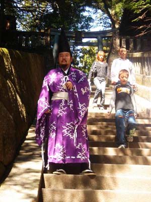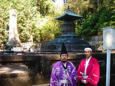 | 平知盛殿の勤められている鬼怒川温泉「あさや」さんのGW企画としてお引き受けました今回の企画ですが、甲援隊関東府設立のために関東方面の隊士や皆様のご助勢にて催すことが出来ました。 今回は打ち合わせのために私と朋月殿は3日に東京入りし、午前中は神田に移動。そして浅草で少し遊び、いよいよ鬼怒川温泉へ向います。 知盛殿と合流し、一路ホテルへ。予想以上の豪華なステージに緊張いたしました。 その後、知盛殿のご自宅で寸劇の音合わせや手合わせなどを考え、次の日に備えました。 その翌日のリハーサルの前に直垂姿で戦勝祈願のため、日光東照宮へ参拝いたしました。家康公廟で気づいたのですが、今年は装束で鎌倉の頼朝公、京都等持院の尊氏公、そして日光の家康公と幕府創始者のお墓巡りをしていることに気づきました。 一海「うーむ、これで名実ともに征夷大将軍よ」 朋月「い、いや、名も実もないんですけど^^;」 一海「・・・う、うーむ。これで名実ともに自称征夷大将軍よ(意味不明)」 と訳のわらないことを言いながら一路鬼怒川温泉へと向いました。・・・ちなみに東照宮に入るや否やデジカメがおかしくなり、独自で撮影した画像が皆無となりました(涙) |