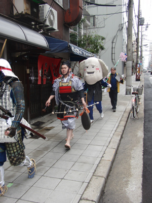 | 2012年の春の陣は合計三回のPR活動をいたしました。 第三回目は作ったばかりの腹当に直垂と大河『清盛』に出てきます北面の武士をイメージしてのものです^^ 結構気に入っていたりします♪ さてこのPRですが果たしてどこまで効果があるのか、願うばかりです。 |