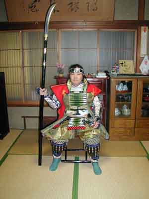 ![]() 貸し具足に風林火山の軍配を手にした佐助殿 |
