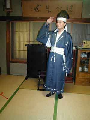 | 今回のプチオフの主役の佐助殿と淀んだ殿です。佐助殿は大袖胴丸を着用しました。そして淀んだ殿はまずは、とmy直垂を着用されました。淀んだ殿はこの後、着せ替え人形のように、私と横内殿が遊・・・いえいえ。着付けをいたしました^^(嗚呼、楽しかった^^;;) | |||||||