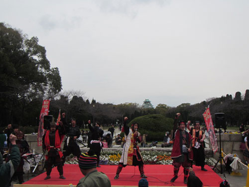 | 大阪城森ノ宮せせらぎの森で開催されました幸村関連のイベントです。 羽々斬さんの援軍で行軍盛り上げでお手伝いさせていただきました。 この日は「黙れ小童」や徳川・北条同盟の互いに顔を触って笑い合うなどネタしまくりで面白かったです。 また『大坂誕生』も販売させていただくことが出来(身内に)完売いたしました^^ さらに屋台が食べ放題という特典もあり、クレープや牛タンに舌づつみを打っておりました^^このような美味しいイベントはまた参加させていただきたいです♪ |