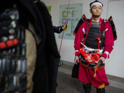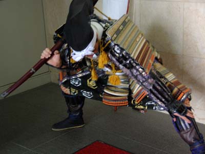 | まずはゼスト御池にて出陣式です。 今回はずっと楽な行程でかつ連日の引越し疲れが出て信玄姿で眠りこけていました^^;; |