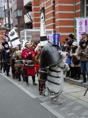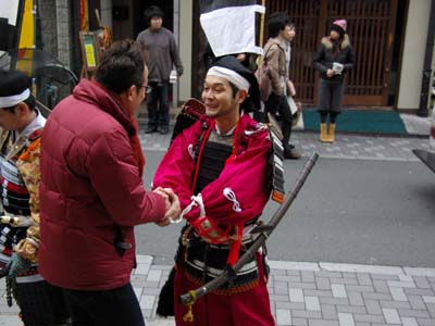 | その後、新風館で休憩、京都文博前で餅つき、そして最後はゼスト御池で知盛殿の剣舞を交えた武揚式、最後は豆まきをして終了です^^ こうして今年も無事京より鬼を追い払うことが出来ました^^ 今年もお世話をしていただきました武尊殿、そして援軍に駆けつけていただきましたしまさこにゃん殿、そして応援に駆けつけていただきました中村不埒殿、Hさんにすい様には厚く御礼申し上げますm_m |