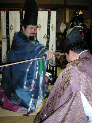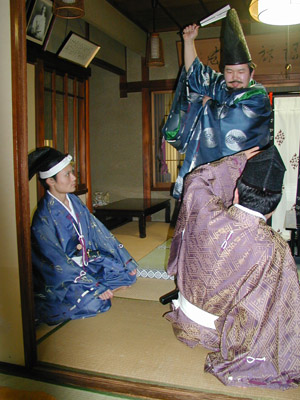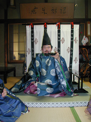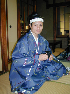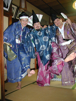 | この日は装束姿でゆっくりとお話することが出来ました。そして最後にネタにと、何故かラインダンスをしてしまいました^^;決して甘酒を飲んだためではありません^^; | ||