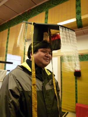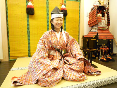 | 2011年のイベント始めです。 この日は例のホテルイベント未遂事件で参加申し込みされた方のみを対象に催したイベントです。 大鎧、腹巻、衣冠、狩衣のうち好きなものを着用して松屋町邸でお遊びください、というものです。参加者は念生さんに迷之介さん。そして見学者として副長が参加されました。 念生さんは大鎧、直垂上から腹巻など楽しんでいただきました^^ よくお似合いです^^ |