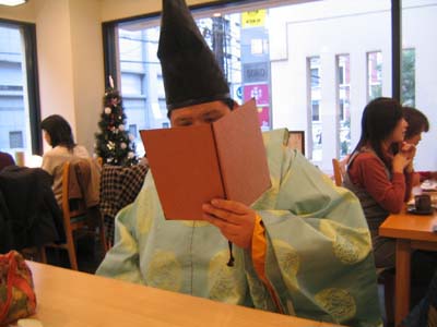 | いつも楽しみにしています年末の源氏物語の夕べが、諸事情により2006年度は休止となってしまい、急遽武尊殿に無理を申しまして、装束オフ会を催すことになりました。 今回の催しは二つ。 一つは仁和寺でまたーりと自主源氏^^二つは公家芋本舗さんにて投扇興の会に参加させていただきました。 さて着替え終了後、レリコジャパンさんの近くを通りかかったので急遽ご挨拶に参りました。幸いにもレリ丸様がご在宅でお会いすることが出来ました^^レリ丸様にご挨拶した後は阪急で大宮、大宮から嵐電で御室へと向いました。 しかしよくよく考えてみれば今年は装束や甲冑で電車やバスに乗ることがしばしば。もう当たり前のようになっているのがいとおとろしいです^^; |