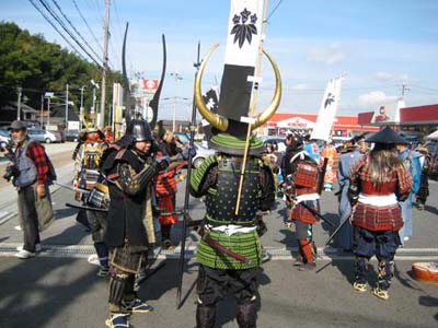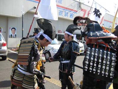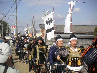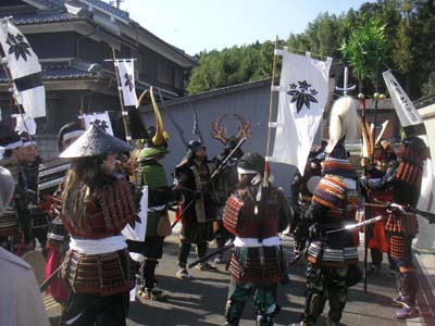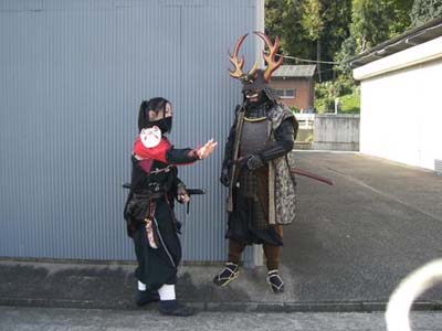 | 今回の試みはまず掛け声の変更。後ろまで合図が届きませんので、中軍の将すなわち軍師職を設置し、山彦のように勝鬨を後ろまで届かせる試みです。 次に太鼓による統一した動きの練習です。いずれもチグハグになりましたが、大きな経験となりましたので、次回の節分では改善していきたいと思います。 演武式ですが、いつもながら素晴らしかったのですが、高取町も今回は新体制のため、結構チグハグで残念ながらばっちり決まりませんでした^^;; せめて躍っている間にナレーションを入れるのはやめてほしかったです^^;; |