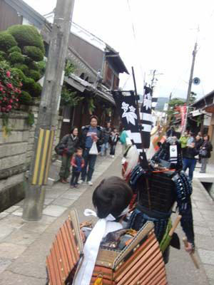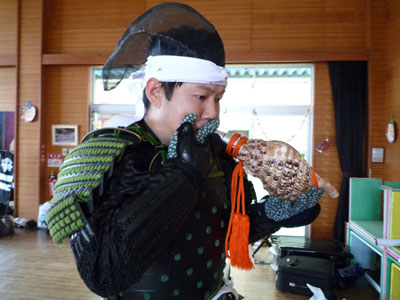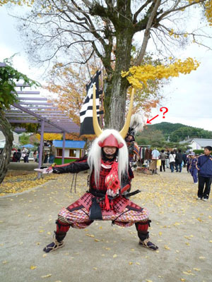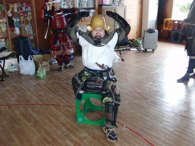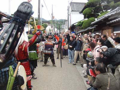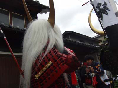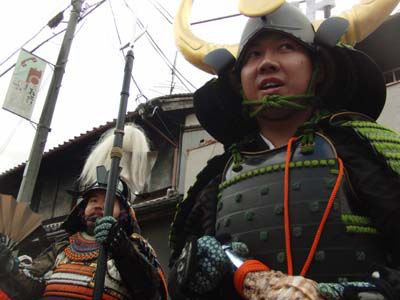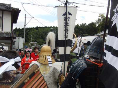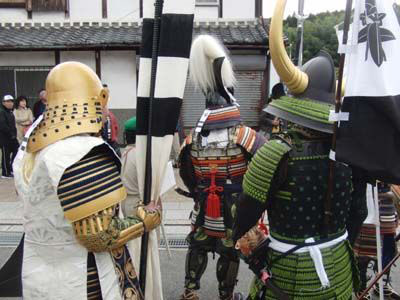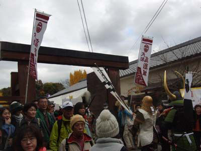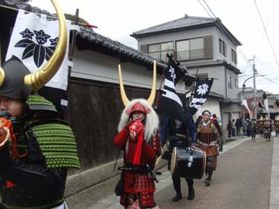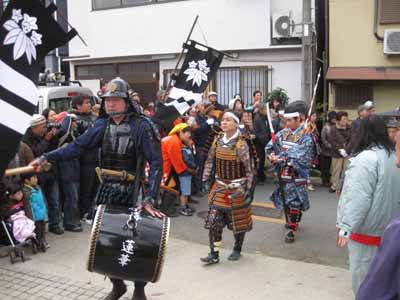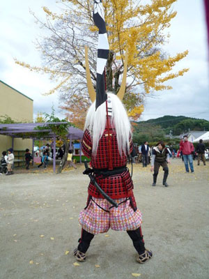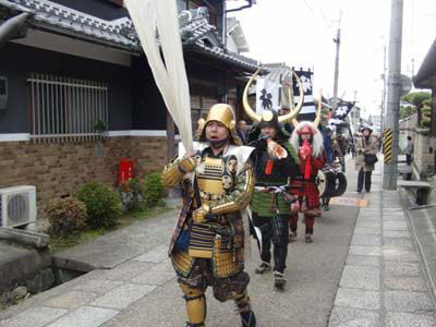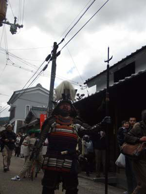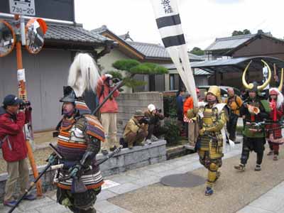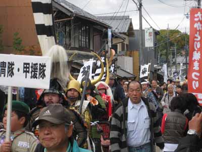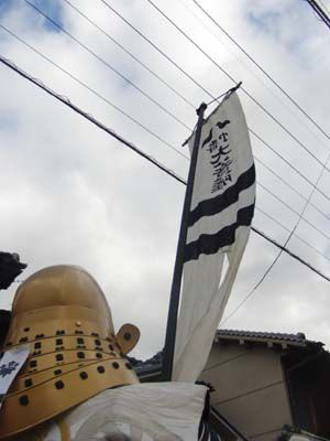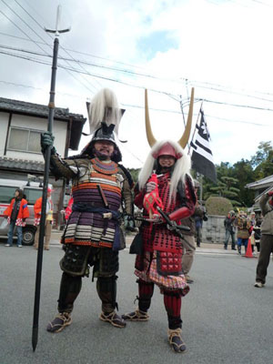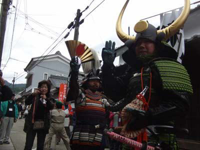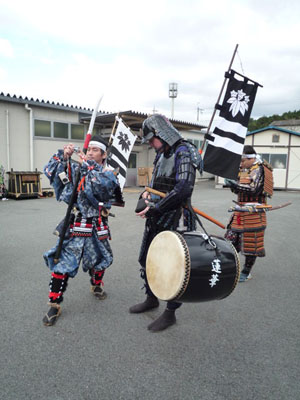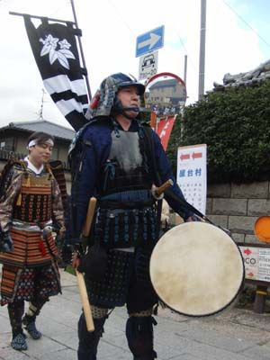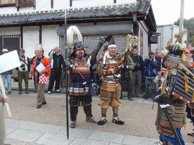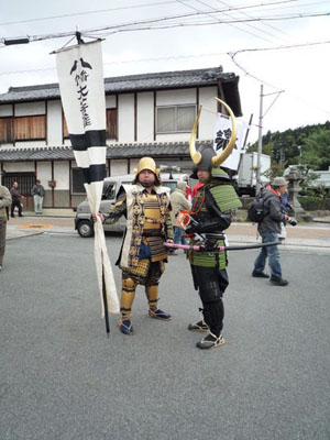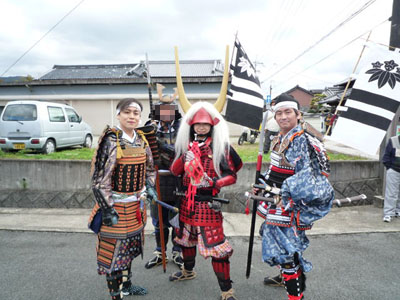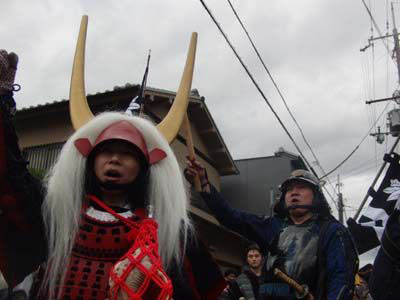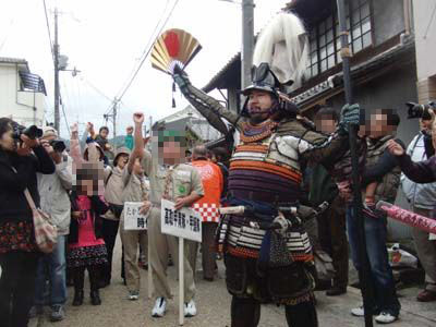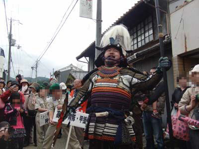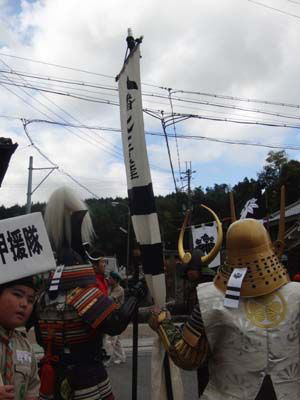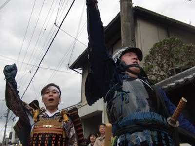 | 今回は先方の依頼で栄誉ある先陣を勤めさせていただきました。また出陣時も御大将(町長さん)と一緒に鬨の声を挙げることになりました^^