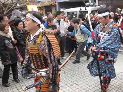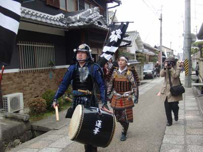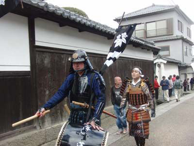 行列の内容自体はいつも通りで、街道の観光客の方と一緒に勝鬨をしたりなど自由奔放に楽しみながらの行軍です。 いつもながら反響が良く、楽しく行軍が出来ました。 ゴール時に実は富楠さんの剣舞と矢舞さんの太鼓をと考えていたのですが…先方の段取りが上手くいかず、不発^^; かなり格好良い舞いだったので惜しかったです^^; このリベンジは来年の松屋町でお願いしてみたいと考えております。 とにもかくにも最後は再び御大将とギャラリーを巻き込んでの勝鬨をして終了いたしました。 |