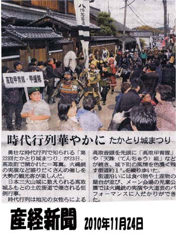 たかとり城まつり2010![]() ![]() 2010年11月23日 【画像提供】念生殿/侍ロード様 |