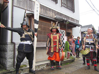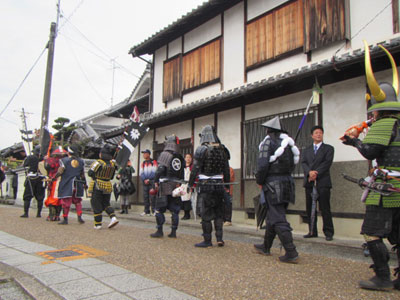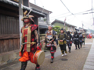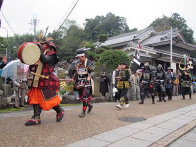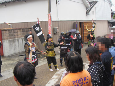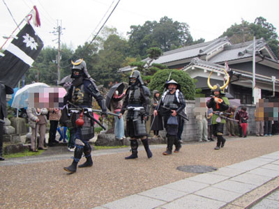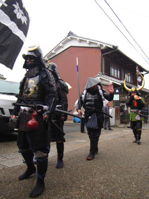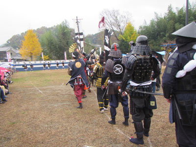 | 2015年最後の武者行列は恒例のたかとり城まつりです。 いつもながら好きに行軍をさせていただける楽しい行列で、和気藹々気力たっぷりで行軍させていただきました。 ただ小雨であったのが難点でしたが、どしゃぶりにならずに済んだことはさすがは晴れパワーの南雲さんのお陰と言うべきです^^ |