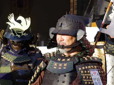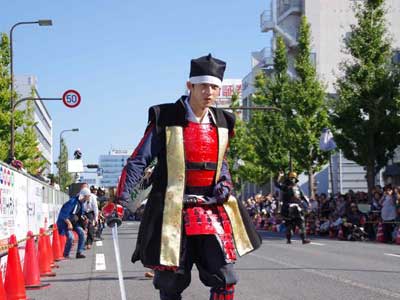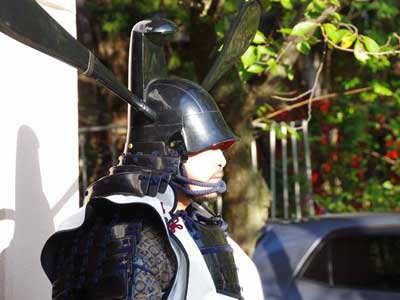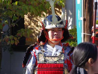 | …いつもながら壮観です。 津の方の甲冑は幽霊雑兵さんの監修ですので、素晴らしい仕上がりばかりです^^。 今年の高虎公は二回目となるこばっちさんです。 一度目も素晴らしかったですが、今回はさらに威厳が増しておられました。指揮もすっかり慣れておられ、声もよく出ておられました^^ 全員集合後、いよいよ出陣です。 朗らかな天候の中の行軍は気持ちよく、元気よく進みます。 市役所前ではよさこい踊りのチームらと勝鬨をしたり、また主馬さんにショウグンクローをかけたりなど、チームワークを高めます^^; 待機後は本番スタートです。 出発式のパフォーマンスですが、更に完成度が高まっていたように思えます。また犬山城まつりで採用されましたスモークなど、良い物を柔軟に取り入れる姿勢は素晴らしいと思います。 槍隊突撃もカッコよかったです。 パフォーマンス終了後もさらに進軍し、いつものルートへ。 私たち甲援隊や雑賀衆甲冑隊さん、犬山手作り甲冑同好会さんに自己紹介の機会が与えられました。 今回ですが、パフォーマンスのネタとして採用したのは「倍返し」^^; 一つ声を挙げれば二つの武運、二つ声を挙げれば四つの武運が返ってくると訳のわからないことをネタにしておりました^^ そのうち八つ当たりとか言いそうですね^^;; 松菱に着きますと、先発・後発隊に分かれます。 私たちは先発隊で、津一夜城へとまず立ち寄ります。 一夜城前にて勝鬨をして、凱旋式会場となる高山神社へと進みます。 |